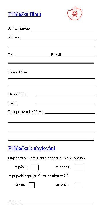 PAF Tachov 2009 - Přihláška filmu