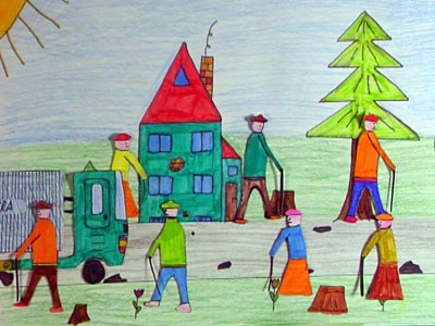 Ilustrace jednoduché dětské říkanky.